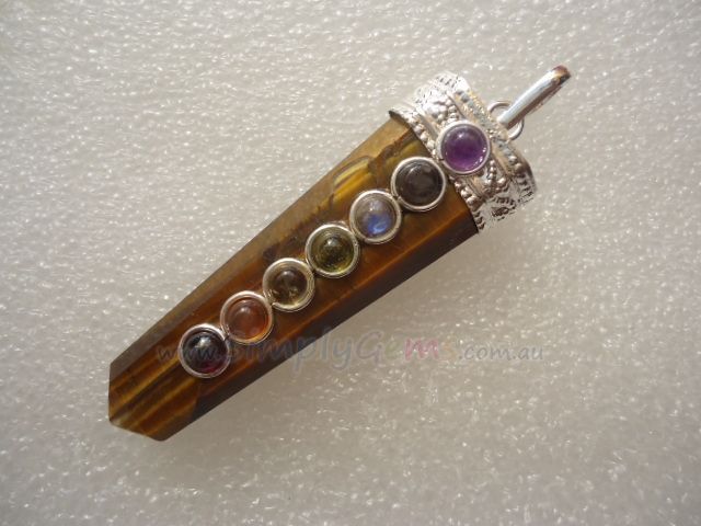 Tiger's Eye 7 Chkra Point Pendant