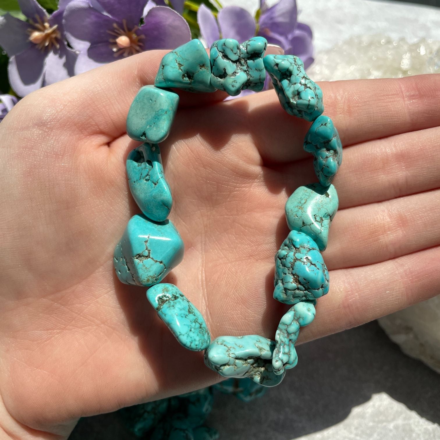 - Turquoise Howlite Nugget Bracelet - Light Turquoise Howlite Nugget Bracelet - Light