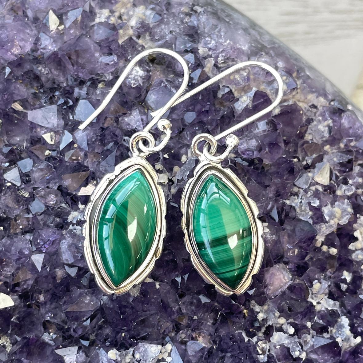 - Sterling Silver Earrings - Malachite - 07 Sterling Silver Earrings - Malachite - 07