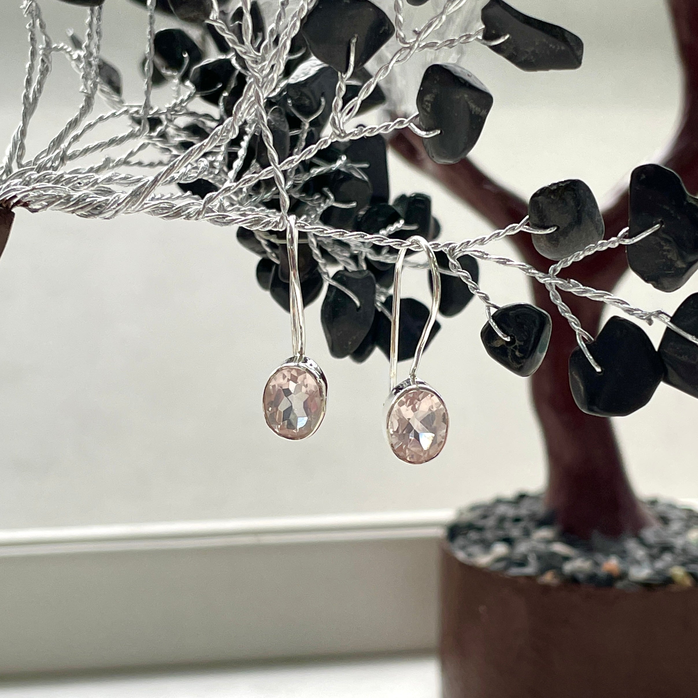 Sterling Silver Earrings - Rose Quartz - Oval