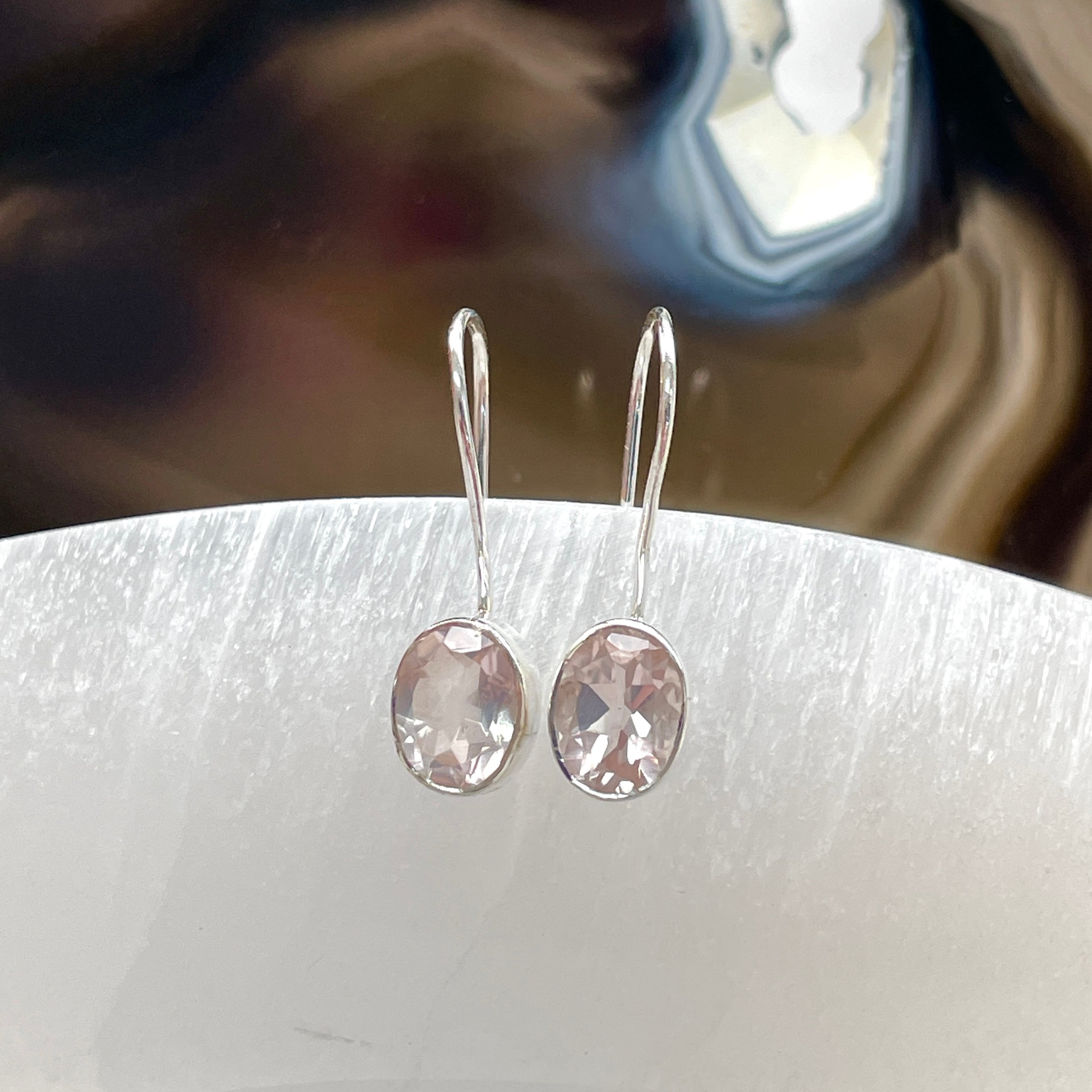 - Sterling Silver Earrings - Rose Quartz - Oval Sterling Silver Earrings - Rose Quartz - Oval