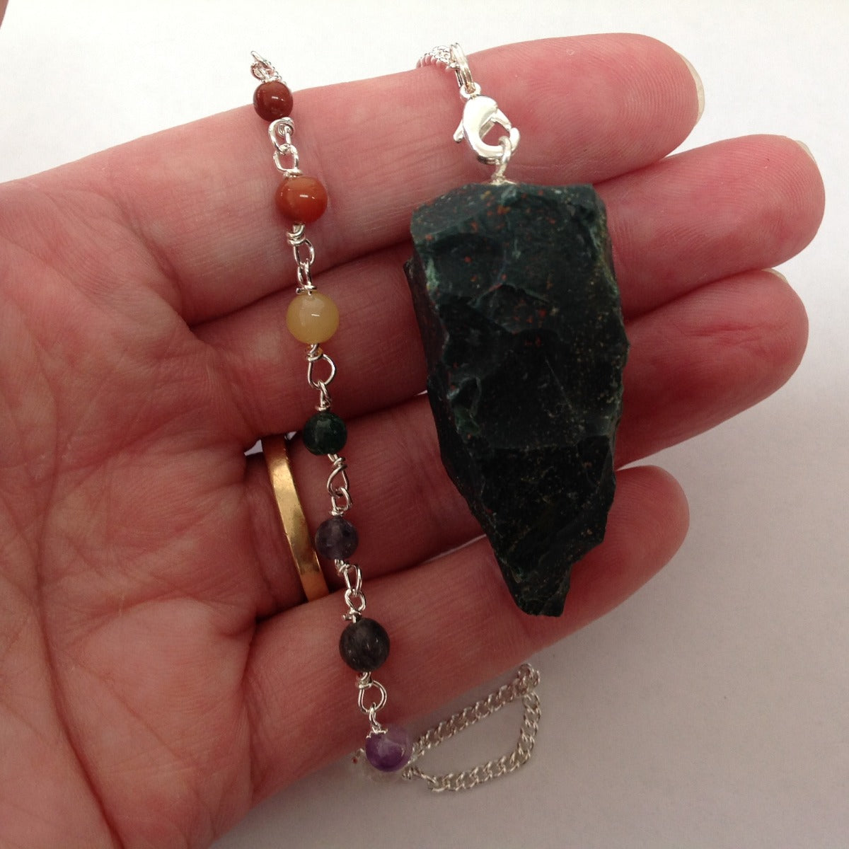 Bloodstone Rough Pendulum with Chakra Chain