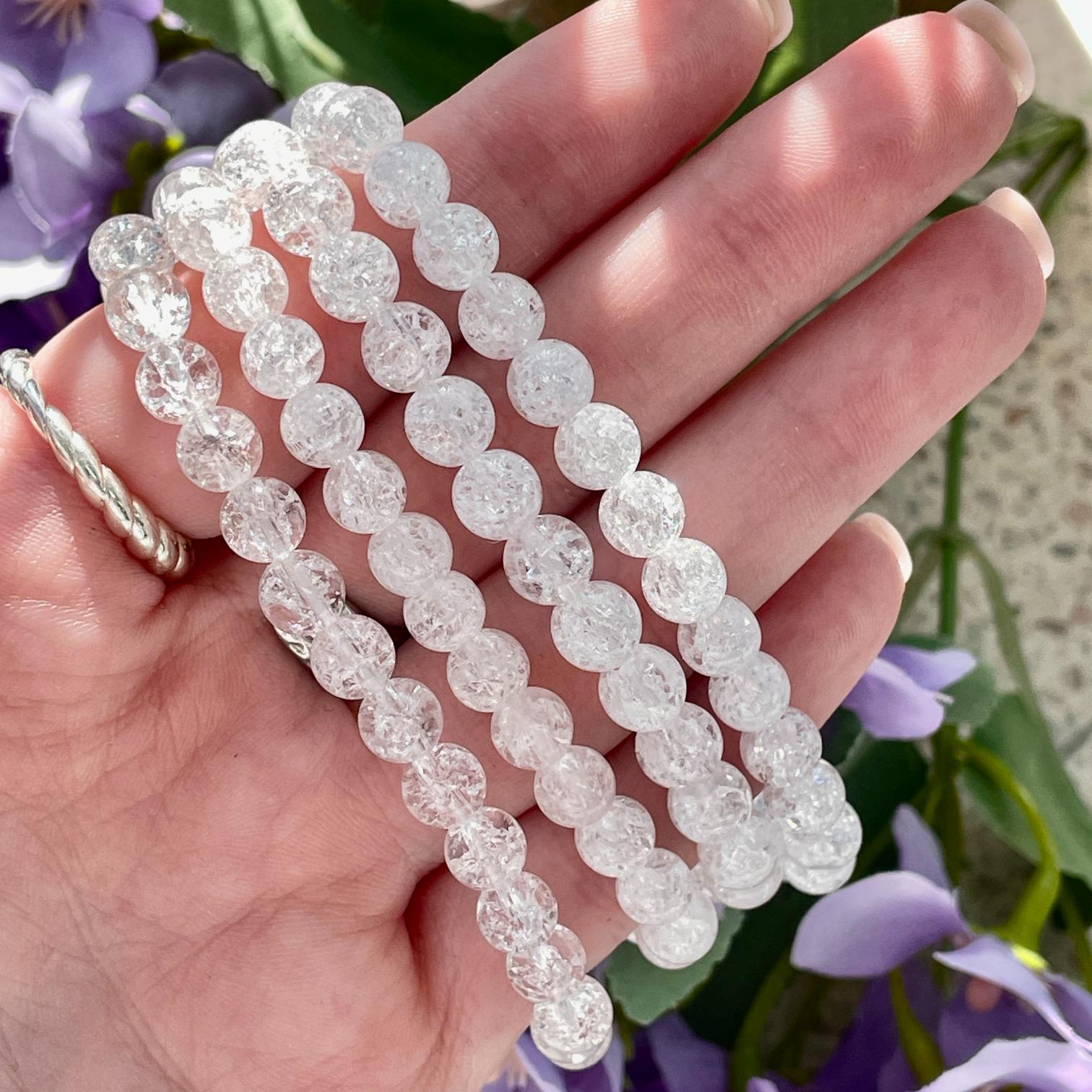 - Cracked Clear Qtz Bead Bracelet - 6mm Cracked Clear Qtz Bead Bracelet - 6mm