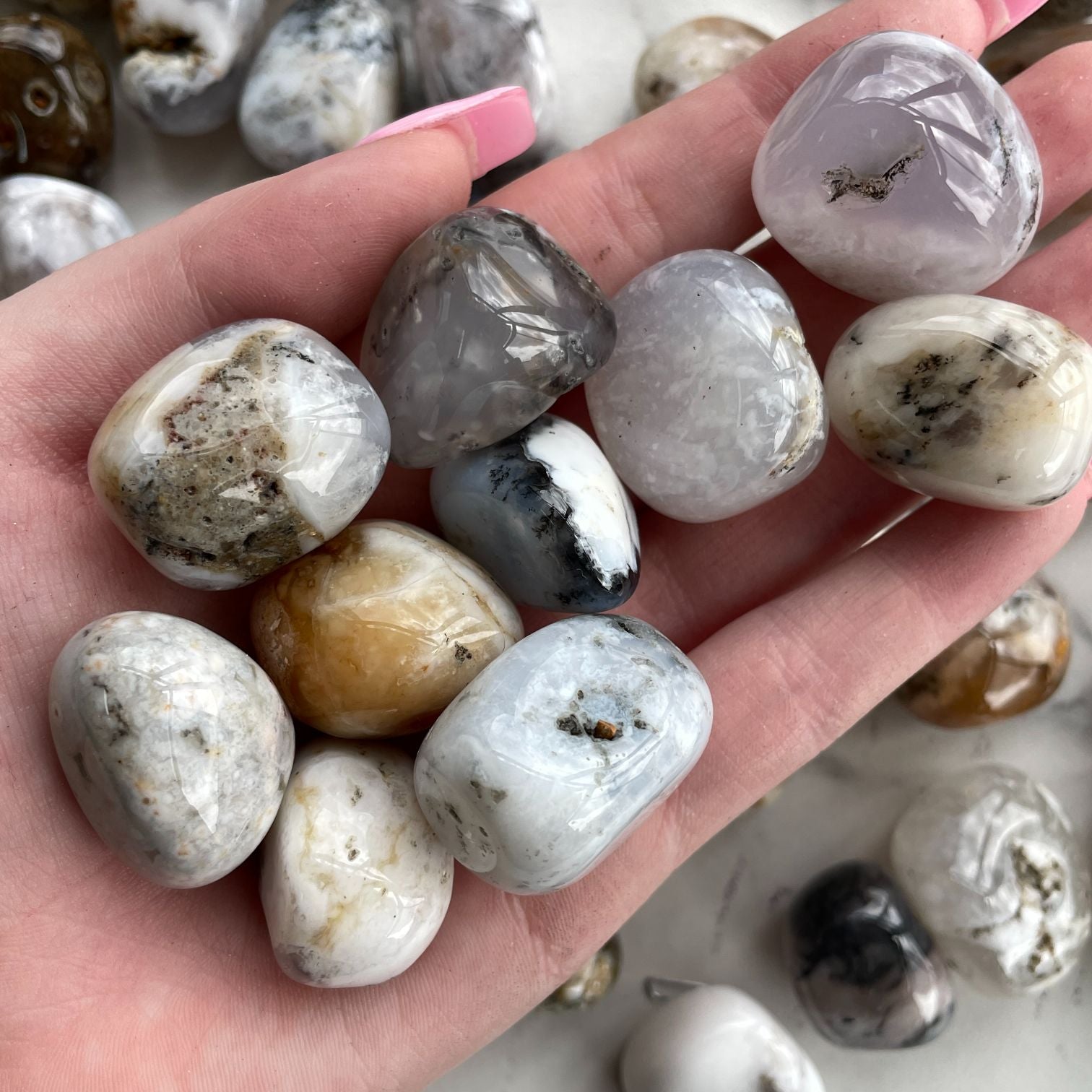 - Dendritic Opal Tumbled - 1KG (50-60pc) Dendritic Opal Tumbled - 1KG (50-60pc)