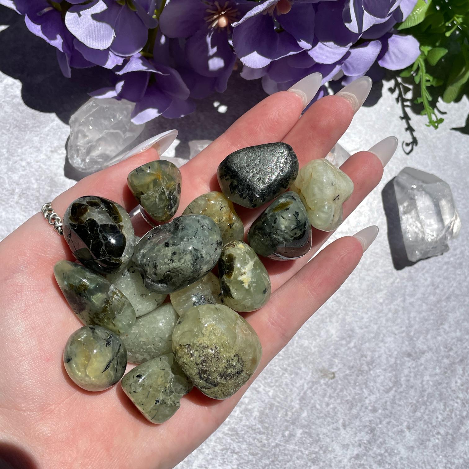 - Prehnite and Epidote Tumbled 200g Prehnite and Epidote Tumbled 200g