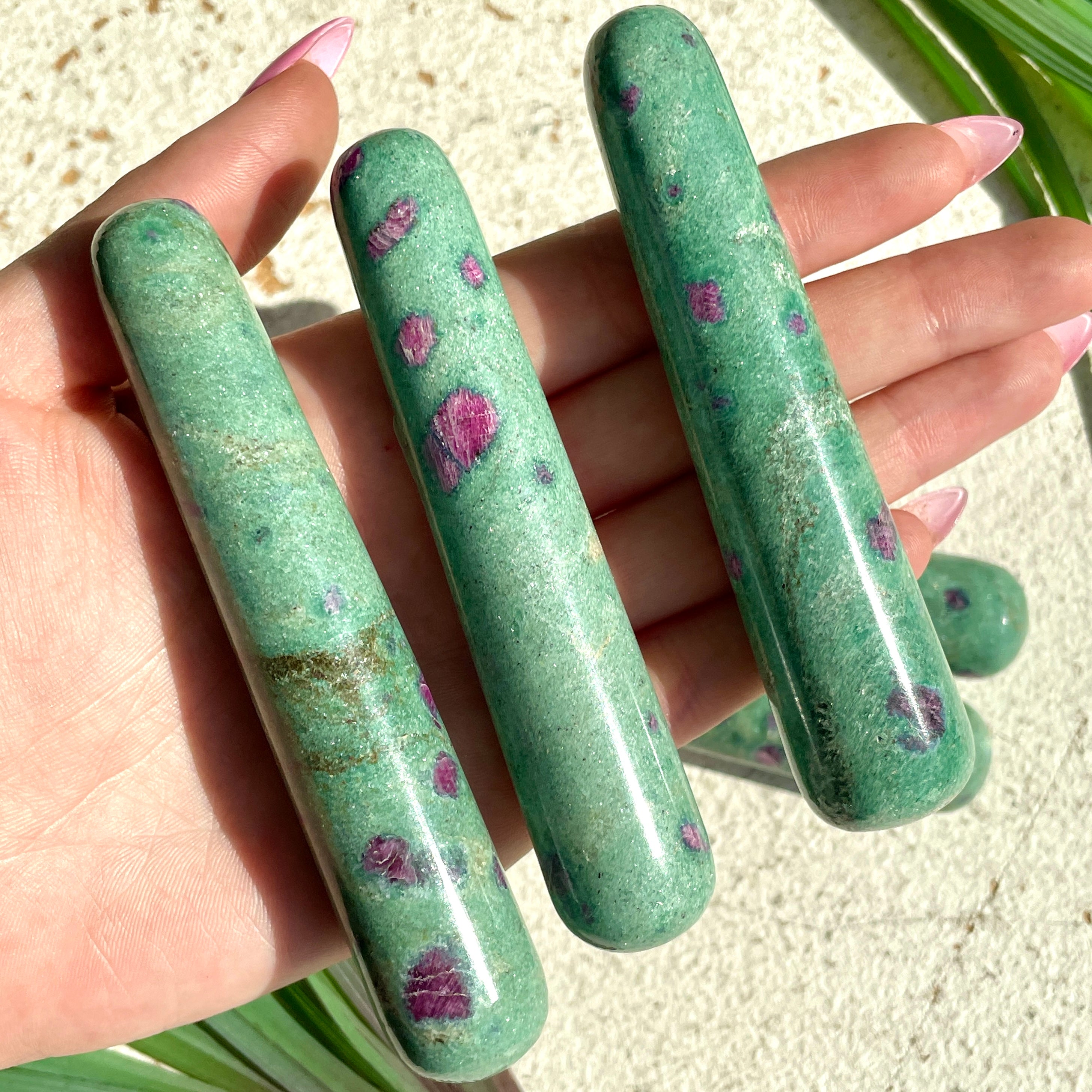 - Ruby in Fuchsite Wand 8-10cm Ruby in Fuchsite Wand 8-10cm